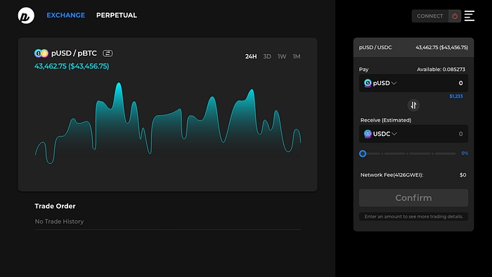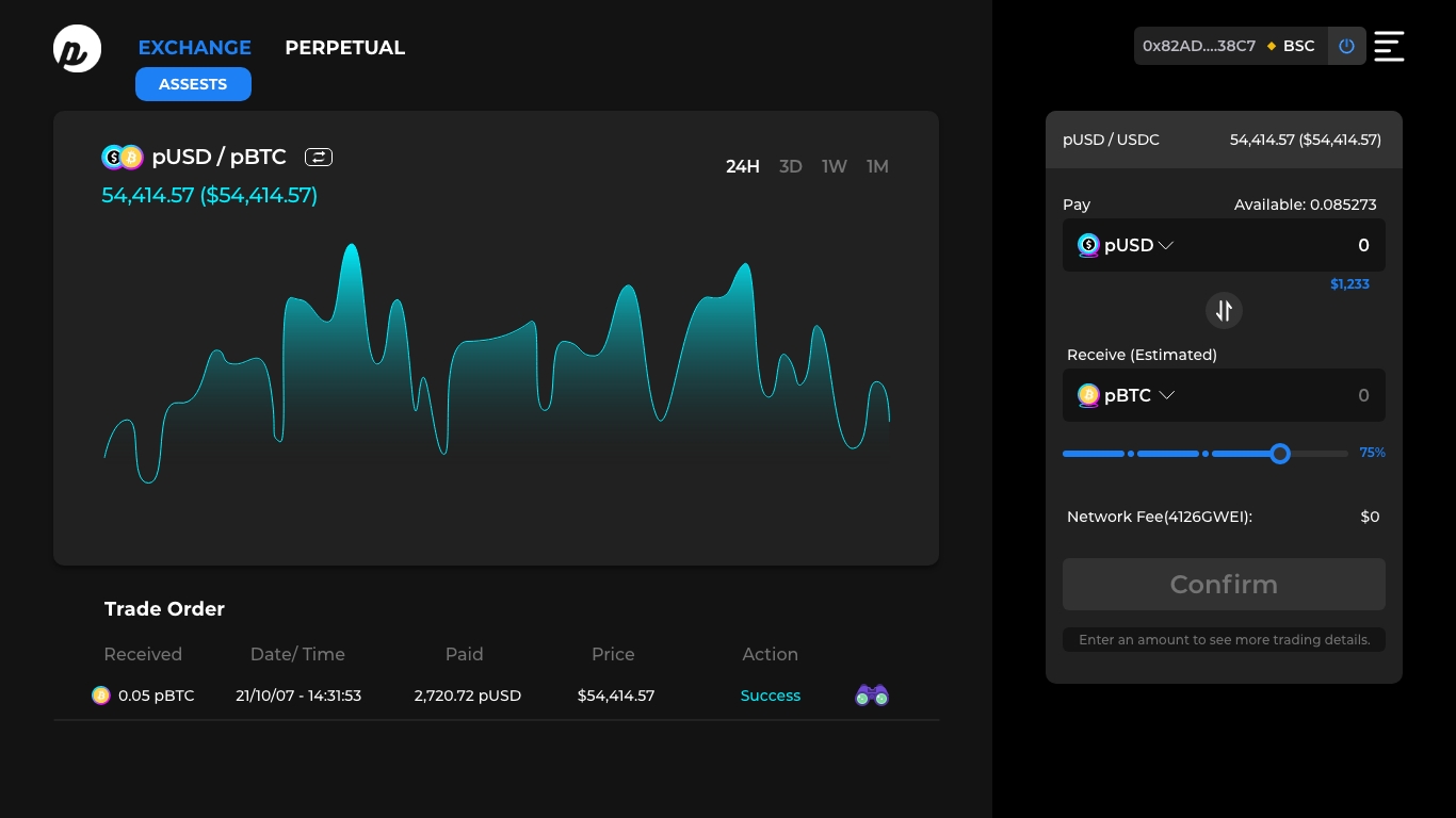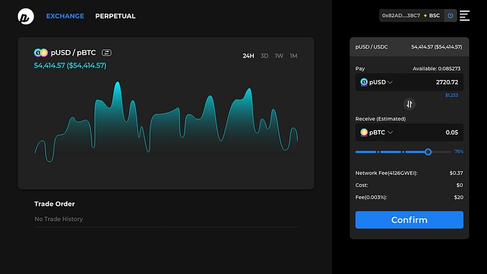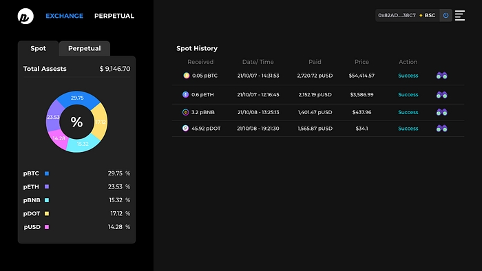 Various kinds of Pynths will be included such as a synthesized blockchain asset (pBTC, pETH, pBNB, etc), stocks(pTSLA, pGOOGL, pAMZN, etc), commodities (pXAU, pXAG, pWTI, etc.), inverse products(piBTC, piETH, piTSLA, piXAU, etc). Wide range of financial assets will provide to users by trade with the minted pUSD, and users don’t need to buy or hold the original assets.