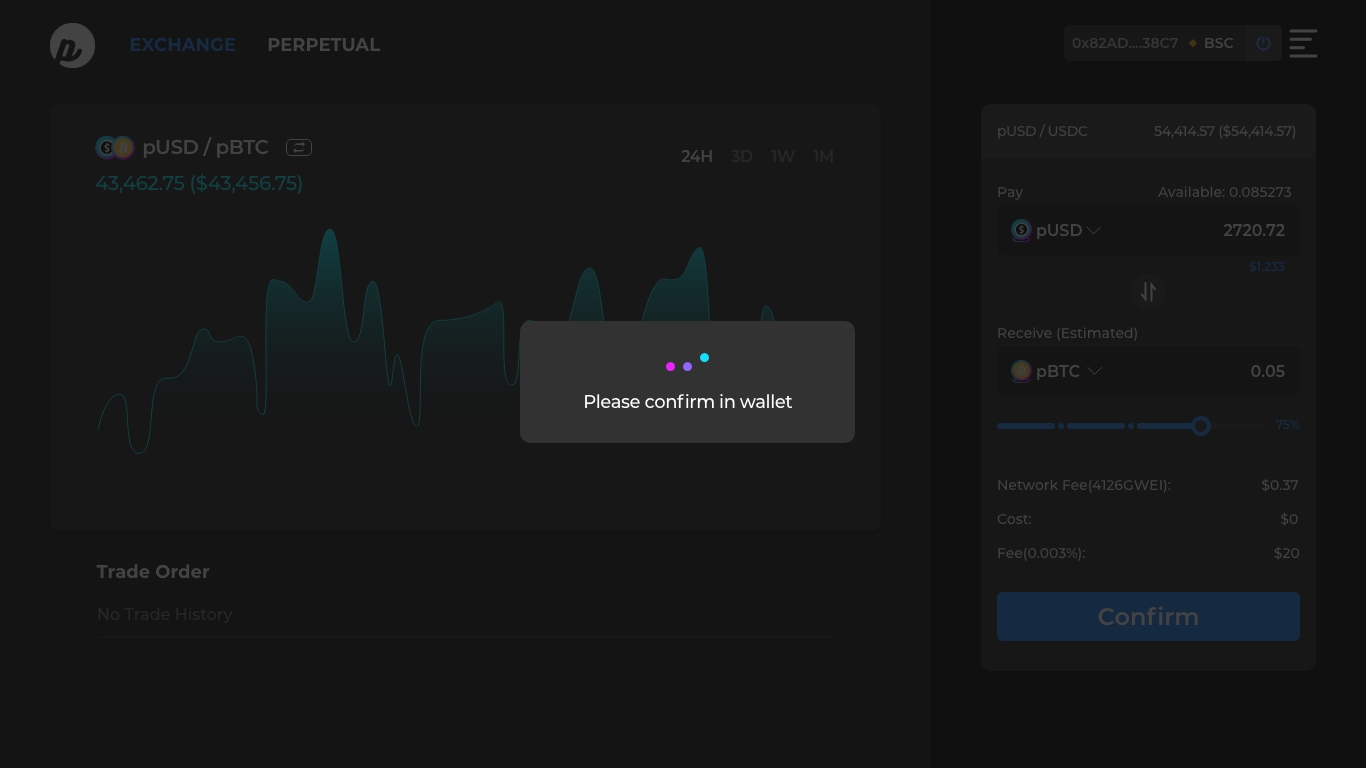 Step 3. Check the exchange rate between pUSD and Pynths, and click ‘Confirm’.