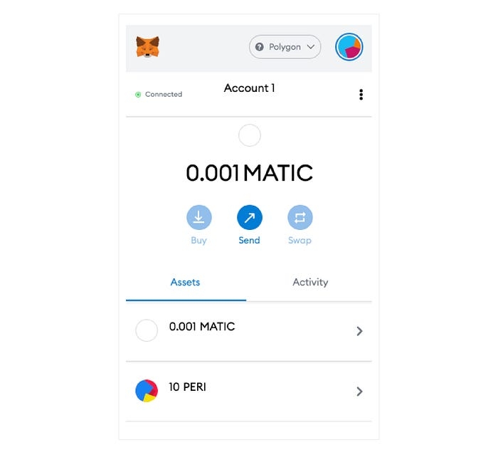Step 14. Once the transfer is completed, PERI token will be successfully added to your meta mask wallets in the Polygon network.