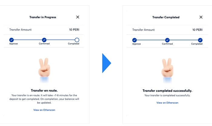 Step 8. Input amounts of PERI Token that you want to transfer into the Polygon network and click ‘Transfer’ button.